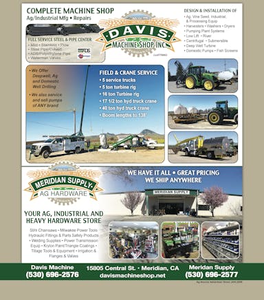 Davis Machine Shop - Meridian CA Business Data Po Box 37 Meridian Ca 95957 530 696-2576. Davis Machine Shop 15805 Central St Meridian CA 95957 530 696-2576 Website. Msp upgrade from 100a to 200a for ag well 1 of 2 on parcel.